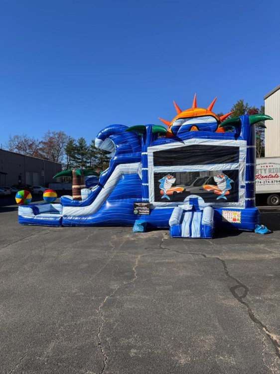 Bring the party to life with our “Beach Vibes” Extra Large Combo Bounce House! This vibrant ocean-themed inflatable features palm trees, beach balls, waves, and sunshine. Delivering the ultimate tropical feel to any event. Perfect for kids of all ages, this combo unit includes: