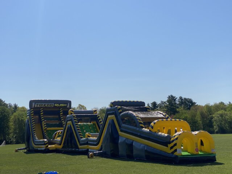- OCCUPANCY: A maximum of 5-6 kids of equal size at one time for bounce houses, and 1 person at a time for slides is what most inflatable manufacturers recommend.