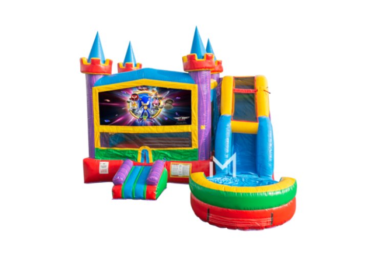 Get ready for a high-speed adventure with the Sonic the Hedgehog Themed Combo Bounce House from Party Right Rentals! This 22x18x16ft inflatable playground is a thrilling arena for all ages, inspired by the fast-paced world of everyone's favorite blue hedgehog. The large bounce area is your Green Hill Zone, providing ample space for energetic jumps and spins. The interior basketball goal delivers an extra dose of sporty fun, perfect for challenging fellow speedsters. The true star of the show is the wet or dry slide, delivering a rush of excitement that rivals Sonic's own supersonic speed. Adorned with vibrant Sonic-themed artwork, this bounce house invites party-goers to join Sonic and friends on a day of unforgettable fun. With the Sonic the Hedgehog Themed Combo Bounce House, your party is more than a celebration—it's an epic race through the world of Sonic!